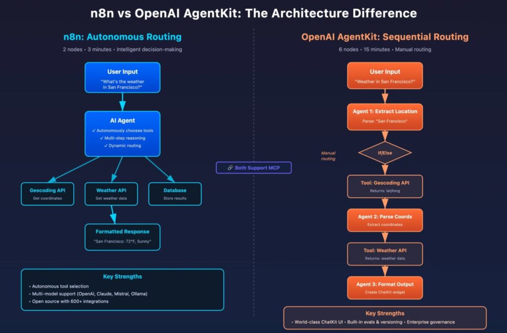 Some enterprises, such as Ramp, are already adopting a hybrid model—using AgentKit for front-end agent experiences and n8n for backend orchestration.